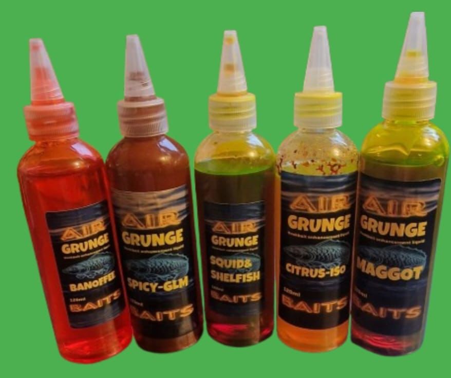 Discover the secret to successful fishing with our exclusive offer: Any 3 bottles of our finest Grunge Liquid for just £20. Carefully crafted to elevate your fishing game, this premium formula is a must-have for anglers of all skill levels. Let’s catch some fish with the perfect liquid bait solution that’s trusted by professionals and loved by avid hobbyists around the world.